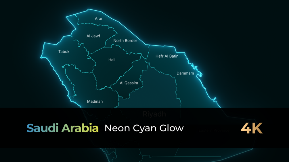 Elevate your projects with this futuristic digital map of Saudi Arabia, featuring three neon-glow styles in ultra-high-definition 3840x2160 (4K) PNG format.